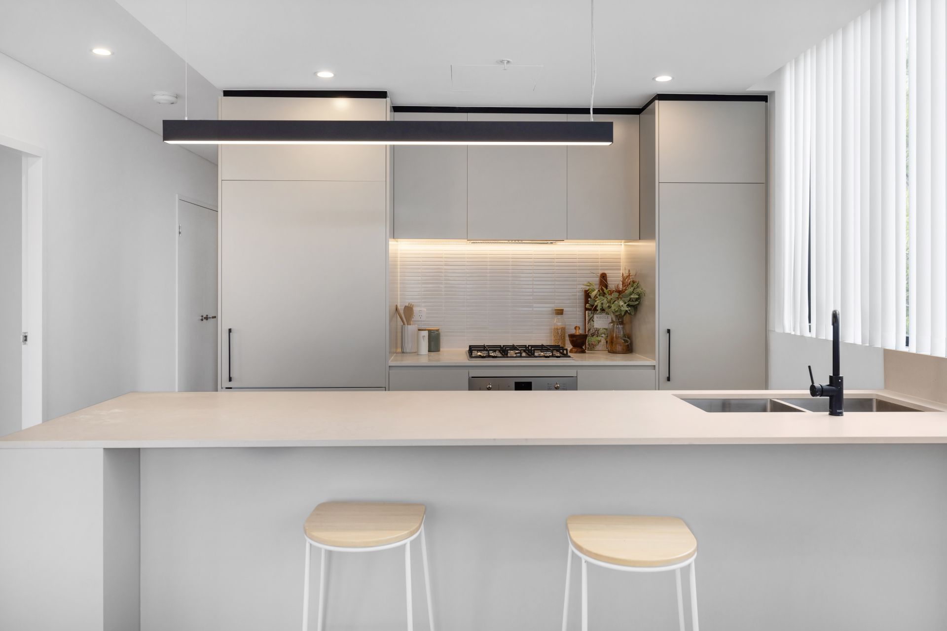 * Stone kitchen benchtop and island