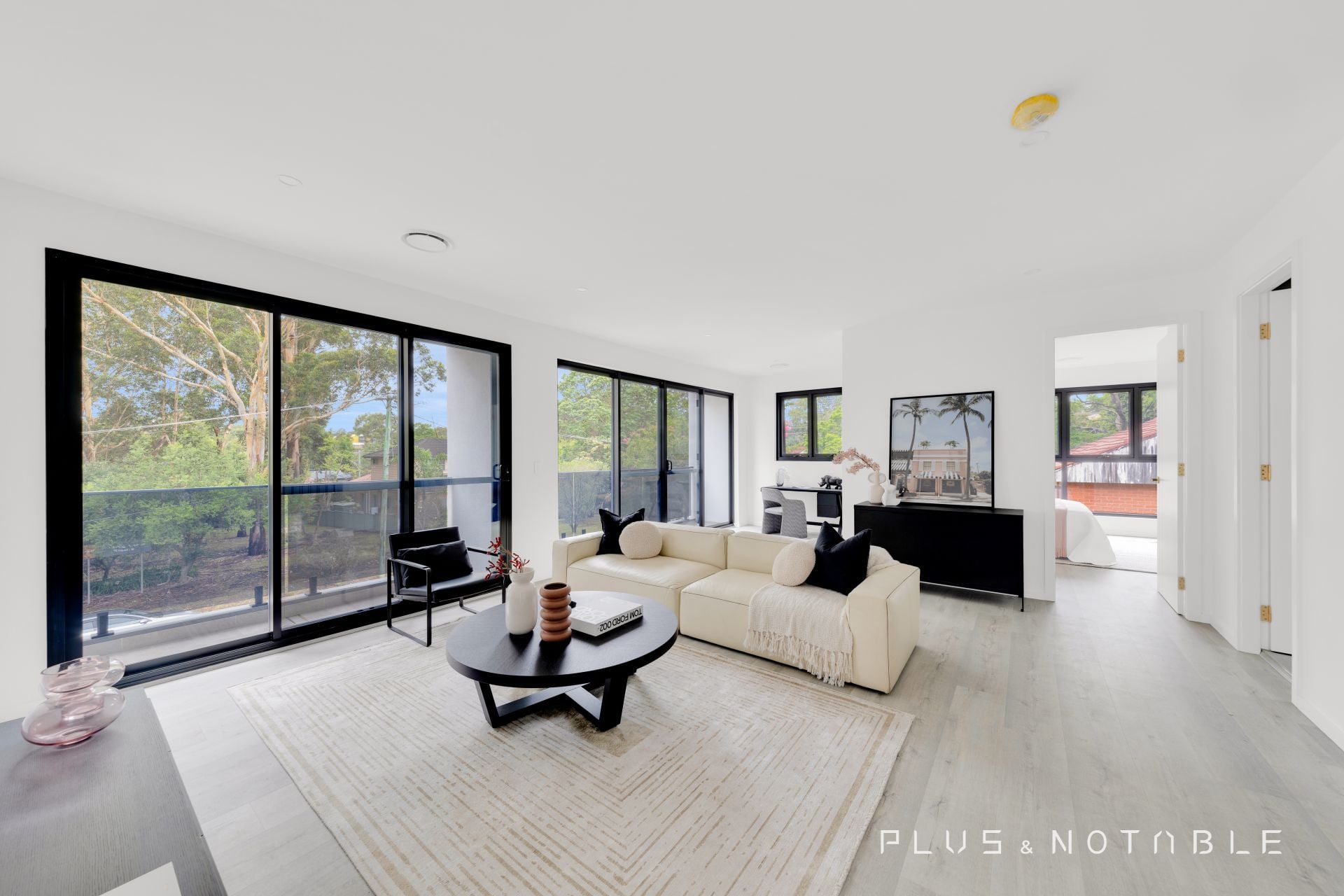 - Floor-to-ceiling glass walls and windows, flooding the living spaces with natural light.