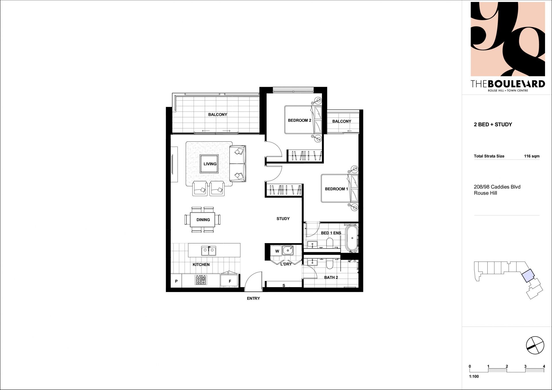East facing aspect, this oversized 2 bedroom + study unit is right next to all the amenities Rouse Hill Town Centre has to offer.