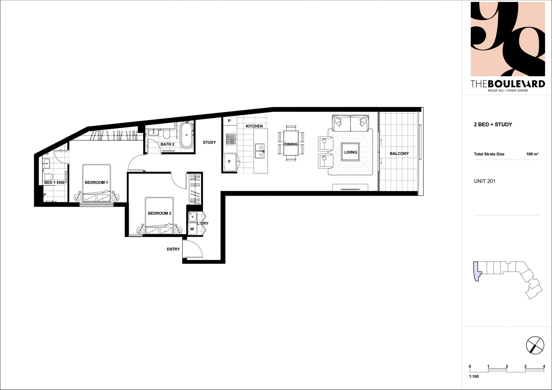 Spacious 2-Bedroom + Study in the Heart of Rouse Hill Town Centre – Urban Living at Its Finest