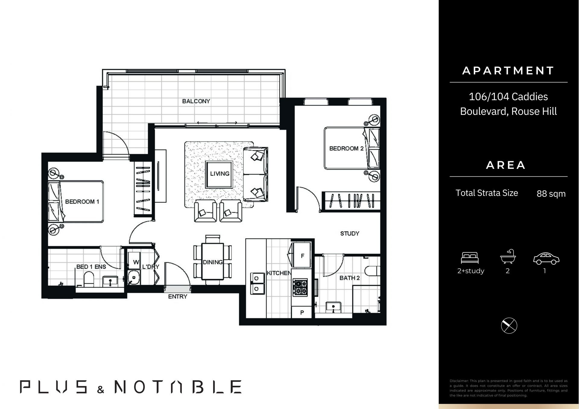 Prime 2-Bedroom + Study Apartment in the Heart of Rouse Hill Town Centre
