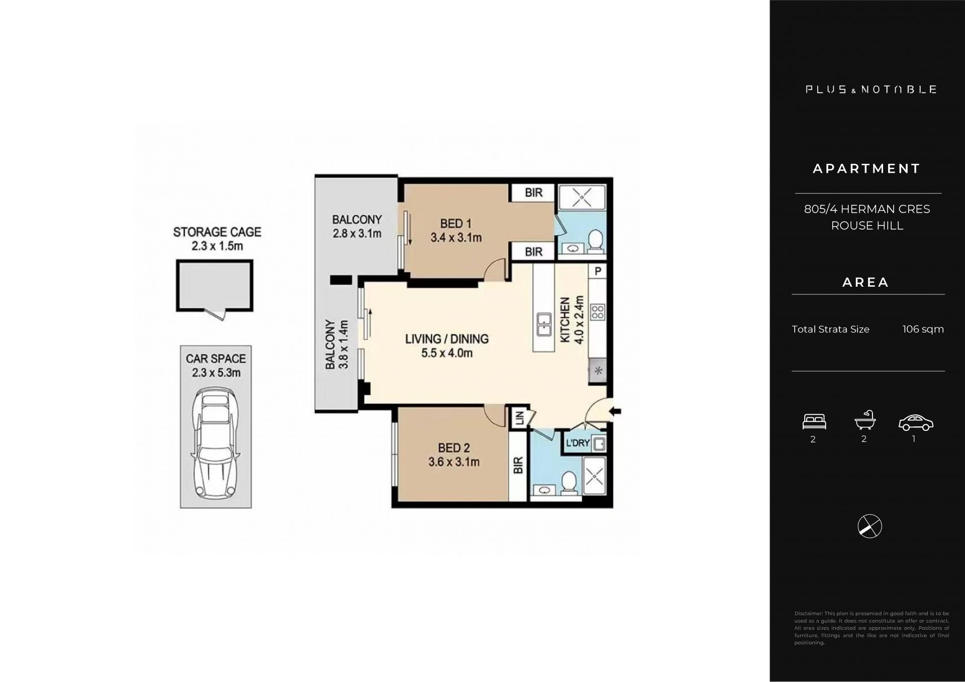 • Secure underground car space plus storage cage