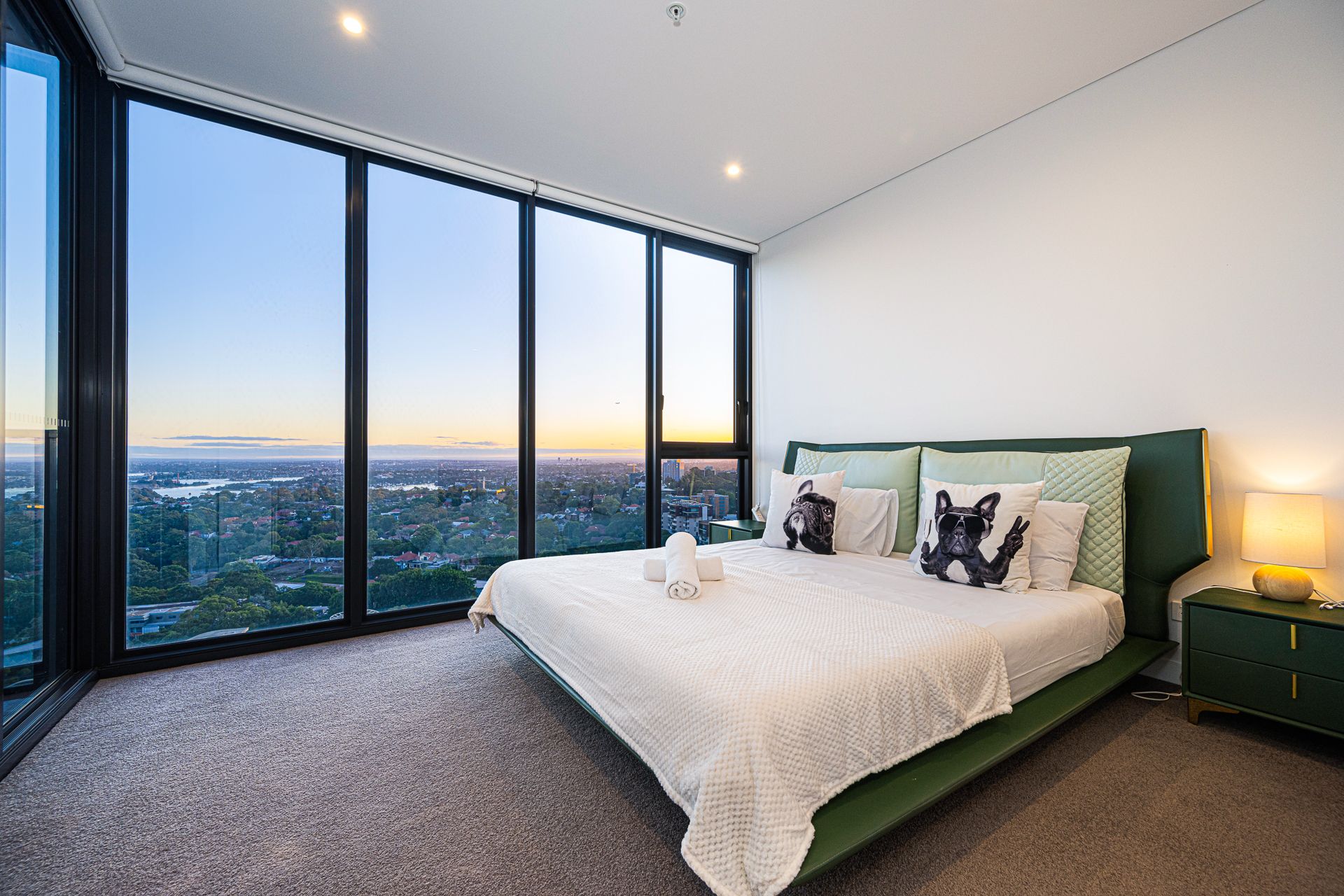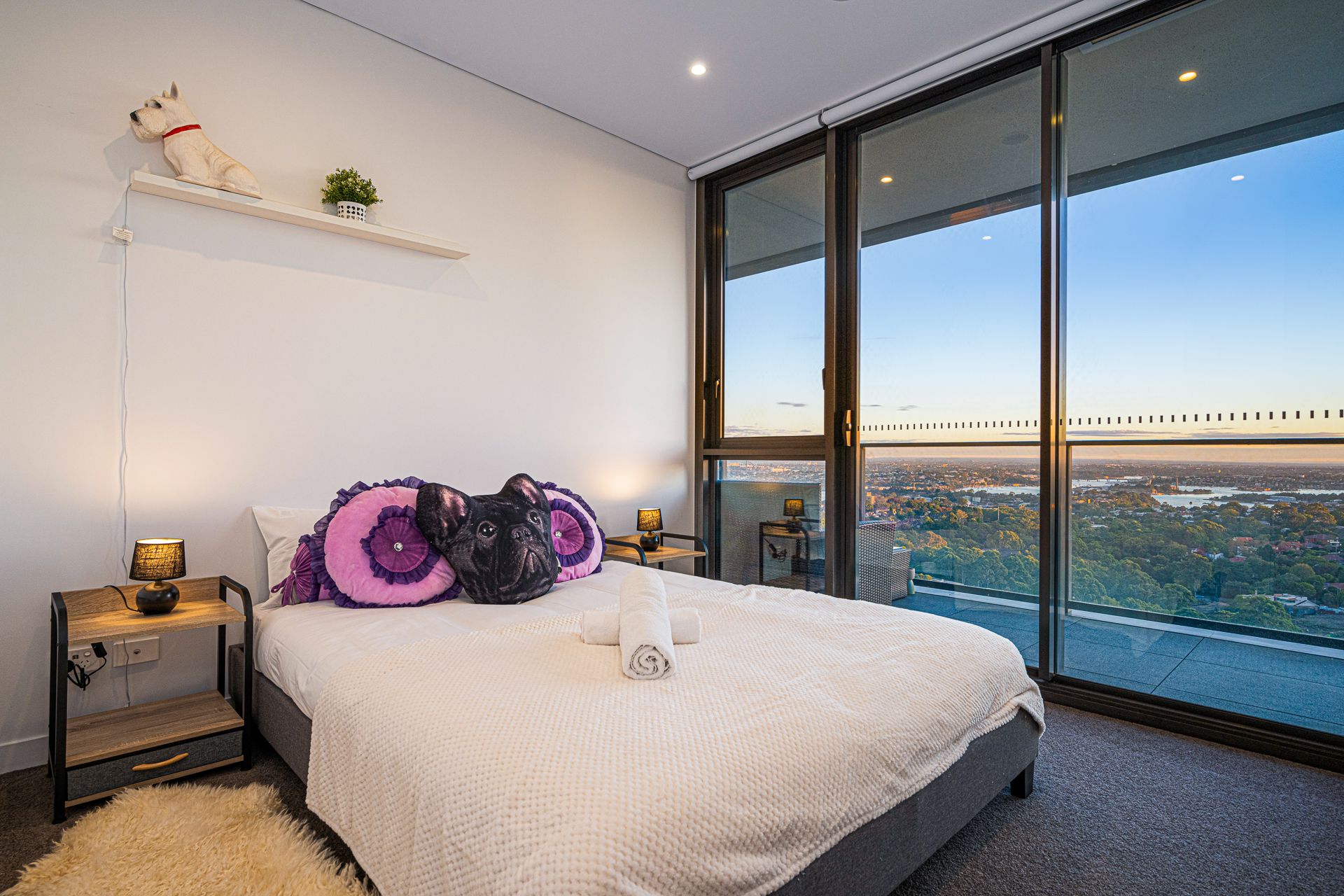 The master bedroom is a sanctuary in itself, featuring an ensuite bathroom, fitted wardrobes, and access to a balcony terrace that offers sweeping views of the Sydney Harbour and beyond. Indulge in relaxation with the freestanding bathtub in the ensuite, creating a spa-like experience.
