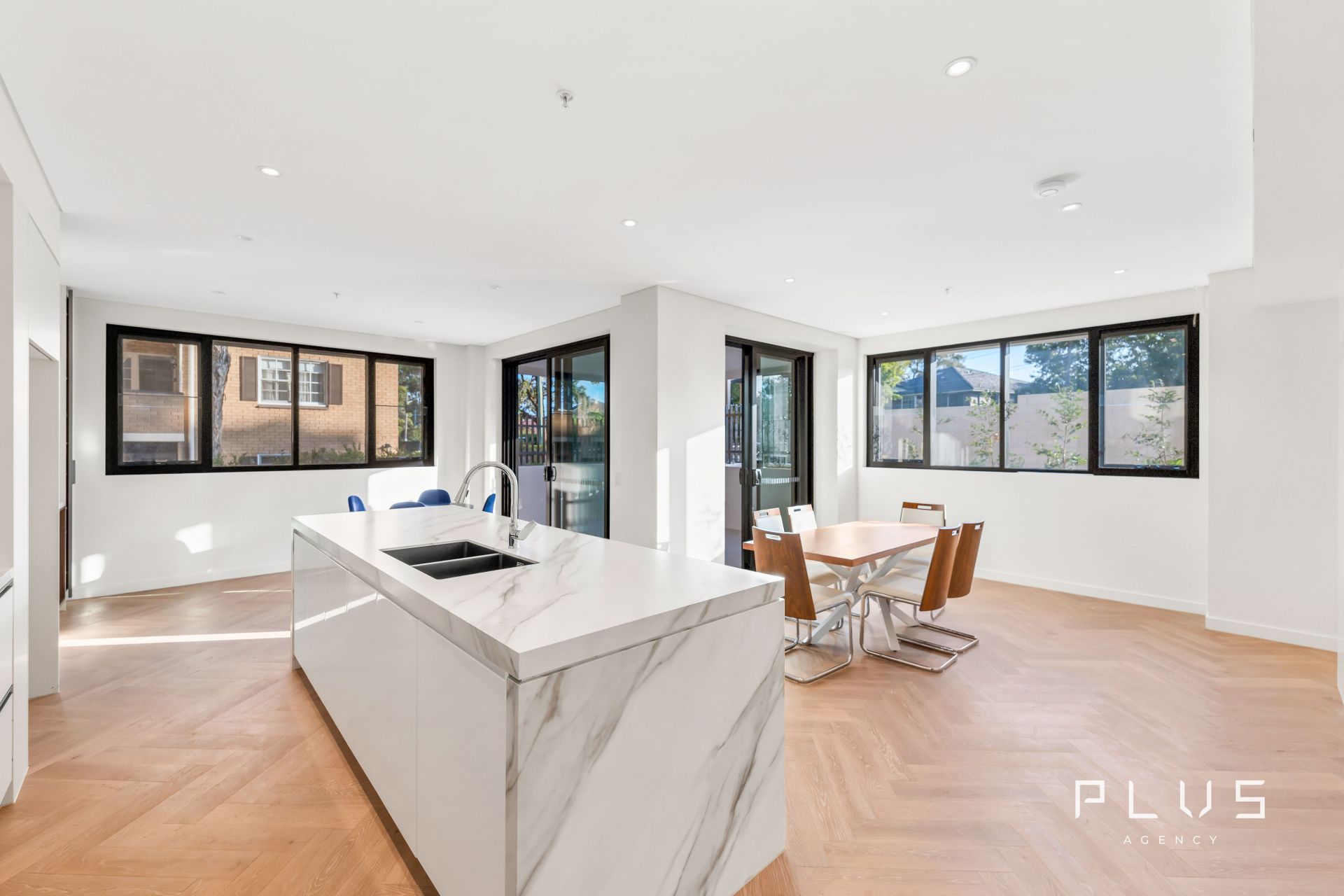 • Elegant Timber Flooring: Herringbone-patterned timber floors add warmth, character, and sophistication.