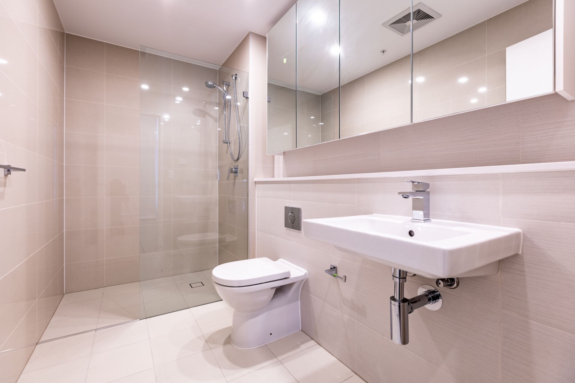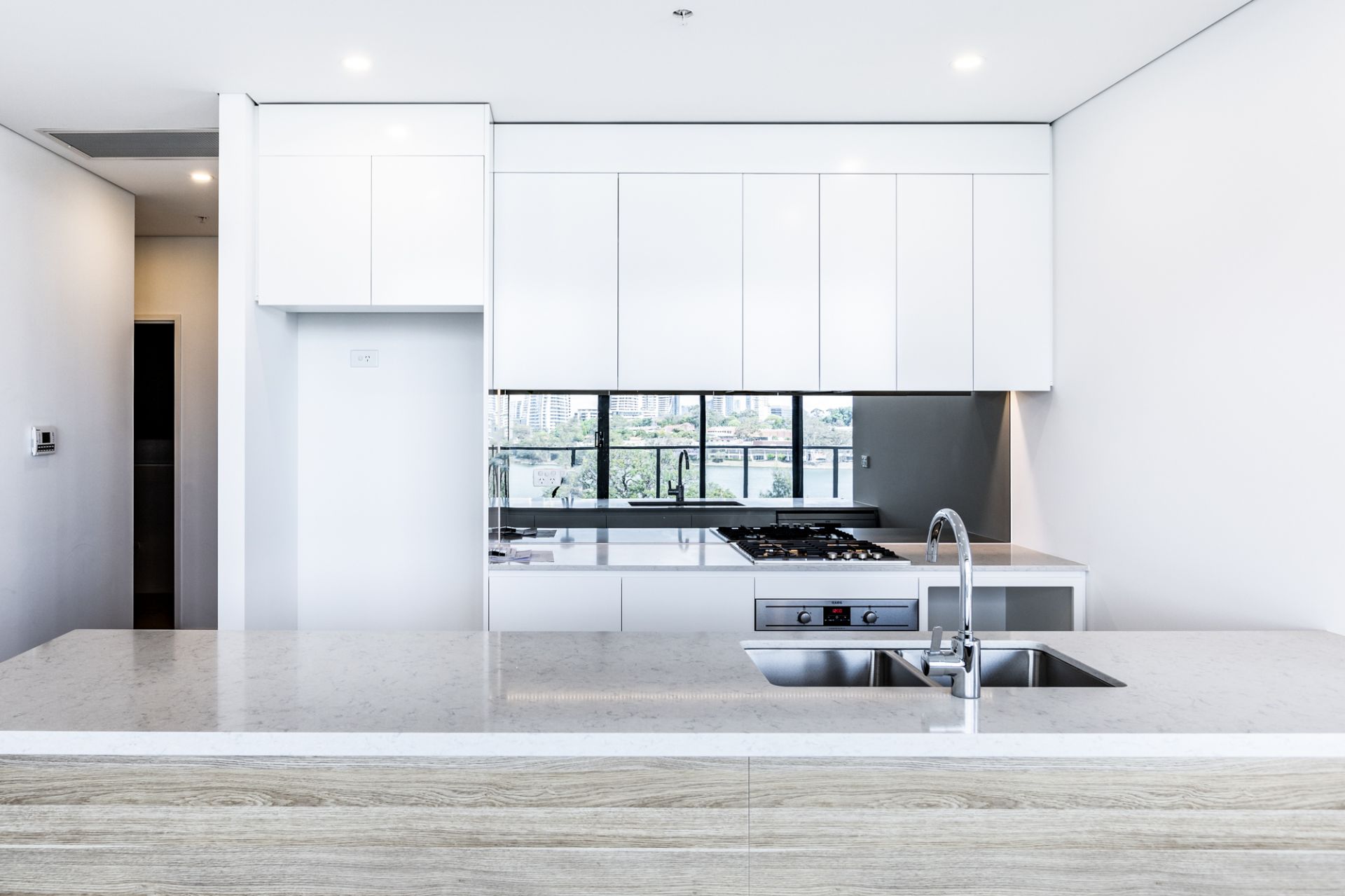 edge and seamless under-mount sink, and a stylish mirrored splash back;